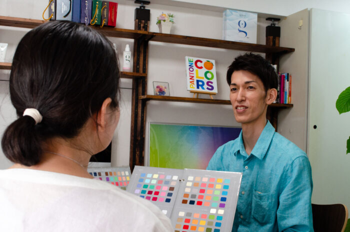 色の奥深さを体験した出来事の一つは、「パーソナルカラー」でした。その頃は、特にパーソナルカラーが今のようにブームになっていた時期でもなく、色の勉強を続けてく中で、そういう分野もあるというのを知ったくらいです。ファッションでも色が好きだったので、パーソナルカラーにも興味を持ったのですが、自分にとって好きな色と自分の個性を生かす色は全く違いました。私自身が選んでいたのは、コンプレックスをカバーするための色、パーソナルカラーはコンプレックスと感じていた個性が自分の強みだと認識できる色だったことを知り、それが衝撃でした。そこから、感じたのは「好みや主観に影響されやすい色を、客観的に選ぶことはとても難しいということ」「たった色一つによってその人、そのモノの魅力の伝わり方が全く違うということ」です。