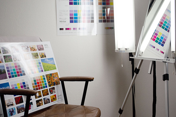 当店のモットーは、専門性の高さ。色に精通した実績豊富なアナリストが、適正な照明環境、診断の際の科学的根拠のある手順で診断を行います。イメコン専門でも、パーソナルカラー専門でもなく、色彩心理などより幅広い色に関する知識を経験を持つスタッフです。